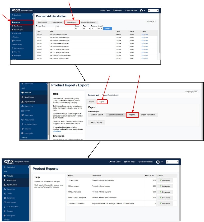 Using product reports to keep a product catalogue up to date feature guide shows you how to improve the quality of your product catalogue by identifying products that may not have appropriate images or keywords or metadata that can be difficult to locate in large product catalogues.