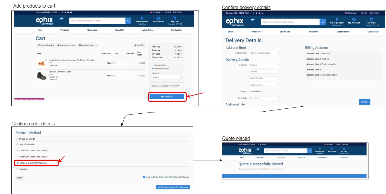 We have extended the integration functionality between Aphix Digital Platform and SAP Business One to provide support to place a quote in SAP Business One. Simply add products to your cart and click Checkout. On the Confirm Orders page, select “Request a quote for this order” in the list of payment method options and click “Request a quote for this order” to place the quote in your SAP Business One instance.