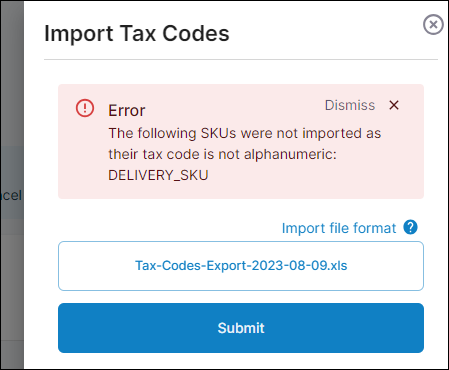 Product tax codes: We’ve included extra messages which are displayed on the product tax codes screen when you manually edit or upload files containing tax codes that may be incorrect or incomplete.