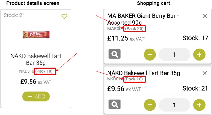We’ve added a new feature that allows you to display a product pack size if it exists in your ERP. The product pack size is now displayed on the product card, in search results and in your cart.