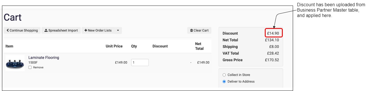 When your customer creates an order on Aphix WebShop, this discount is automatically applied in their Cart and displayed as Discount.