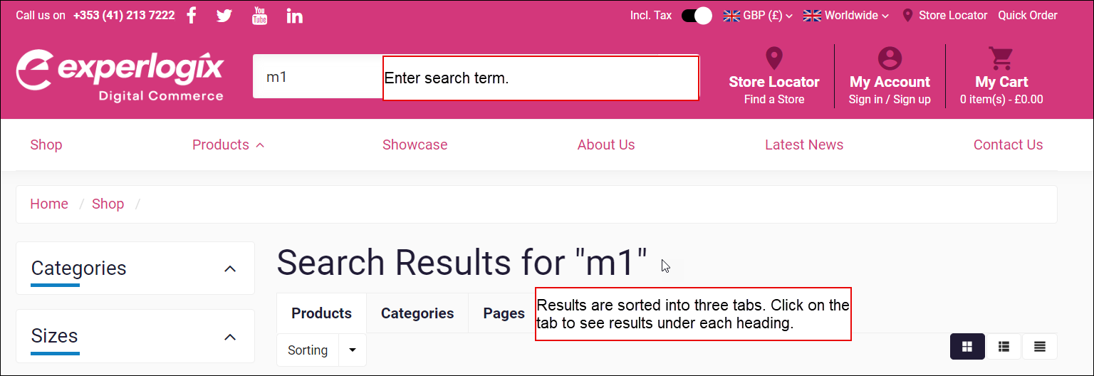 Your onboarding consultant will set up your search configuration options when they set up your WebShop.