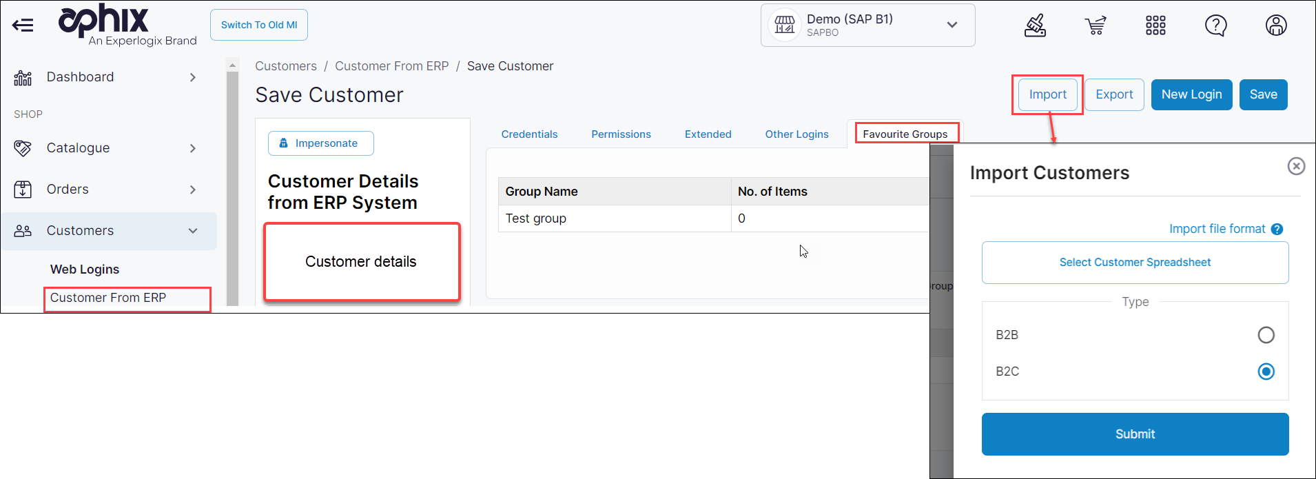 • Click the edit icon to the right of the customer you wish to modify. The customer can be listed under Web Logins or Customer From ERPs This opens the customer’s details.