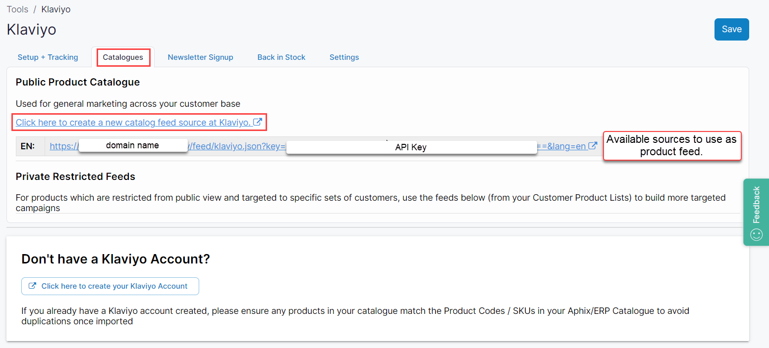 You need to follow this procedure once to set up an integration between Digital Commerce and Klaviyo.