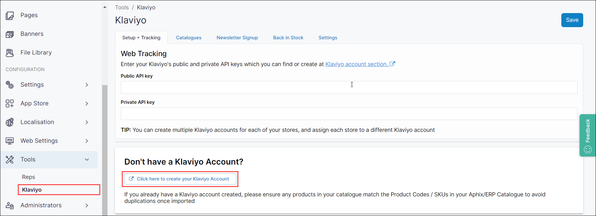 Our built-in configuration tool guides you through creating a link between Digital Commerce and Klaviyo.