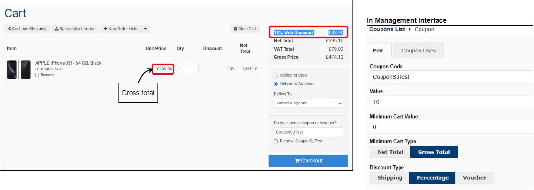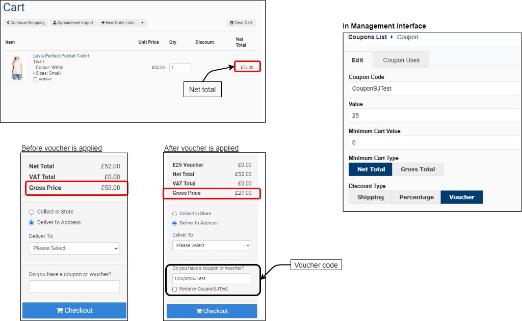 As a merchant, you may want to improve your product offering, by selling gift vouchers or including discount-based coupons on either all or some products in your catalogue. The Coupons feature allows you to create a variety of different discount-based coupons in the Management Interface. The discount-based coupons can be applied to all products in your catalogue, or to products that match specific criteria.