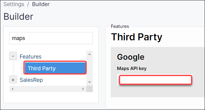 Select Third Party under Features and scroll down to Google → Maps API key.