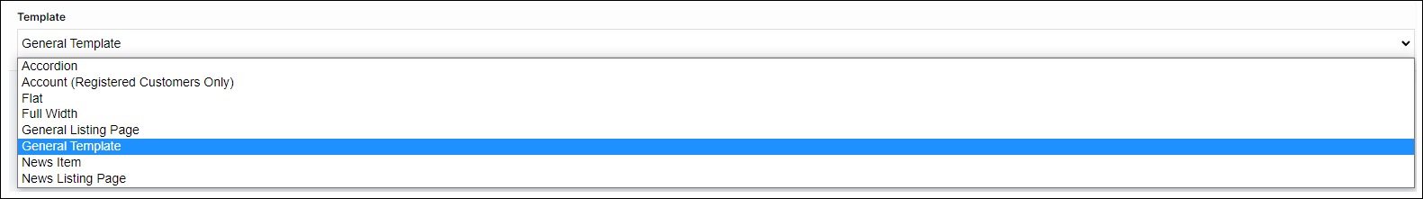 Each page is assigned a template. A template is a preset page for that page. Eight templates are currently available. Each template has a specific purpose. Consequently, each template has a specific set of pages it can be applied to. For example, the News Listing Page template can not be used for the initial landing screen to your WebShop.