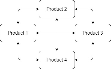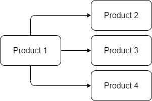 A linear related product is one which is associated with a set of one or more other products, but the other products are not related back to the original product or each other, as shown:
