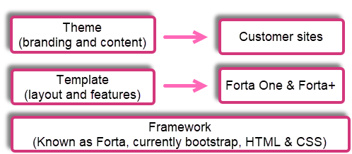 Your new WebShop is deployed with our standard framework installed on it. Forta One is the standard template that is applied to the WebShop’s design framework, Forta. The other template listed in the diagram, Forta+, is typically used when you have purchased a SmartPack. Forta One has a number of standard elements that define your WebShop’s layout and a set of configurable options that define its functionality. Forta+ is based on Forta One, with some additional standard elements. The standard elements of both Forta One and Forta+ are described here. Finally, you can use our design and content tools to apply your theme (essentially, your branding and content) to your WebShop. Find out more about themes here.