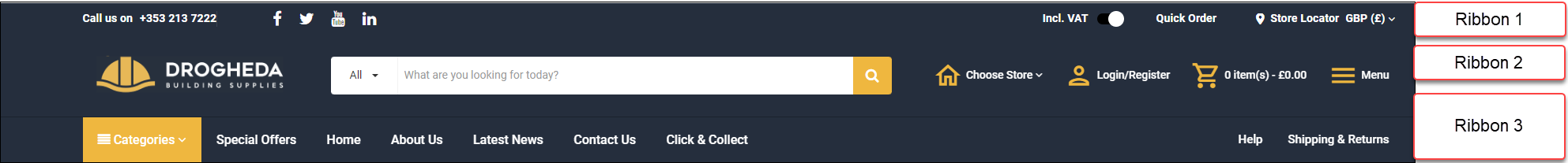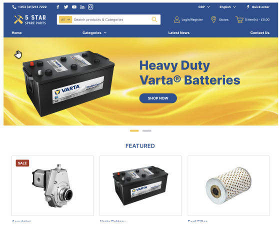 Typically, Forta+ is the template used if you have purchased a SmartPack, such as our Machinery and Spare Parts SmartPack. Forta+ has the same basic layout as Forta One, with additional elements included as standard. It contains an additional burger menu and a set of industry focused icons.