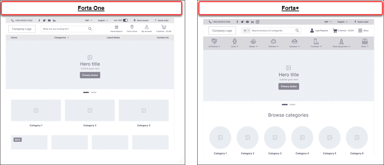 Forta One is the standard template that is applied to our design framework, Forta. Once Forta One is applied, you can brand or theme your WebShop to suit your business needs.