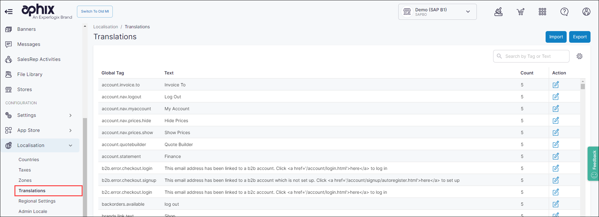 Use our Translations feature to configure and customise many WebShop field labels and error messages. Or import a file with field labels and error messages translated into different languages - as standard, we support English (UK), English (US), Dutch (Netherlands), French, German and Spanish.