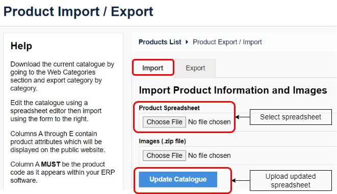 Click Update Catalogue. This imports the updated product spreadsheet, and updates the product status.