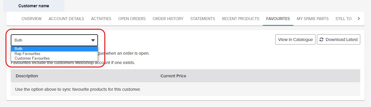 SalesRep maintains two Favourites lists: