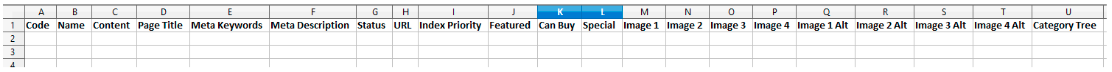 The columns in the spreadsheet are in a specific order. Do not move any column to another location. Moving columns results in a failed import of your product data.