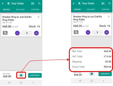 Calculated based on Net total, VAT total and Shipping.
