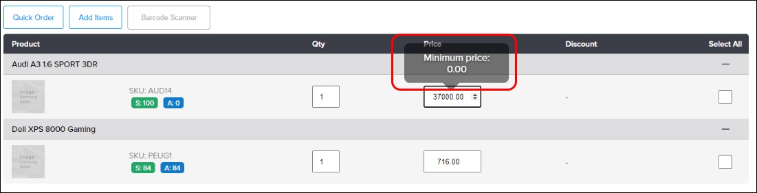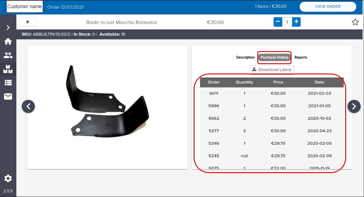 As your sales representatives or in-store service move through the process of compiling and placing an order using SalesRep, they are presented with additional features that support this process and make it more efficient. These optional features, which are set up during your SalesRep implementation, include setting minimum selling prices for each product, checking a customer’s purchase history to help with price negotiations , and requesting a customer’s signature to confirm order placement.