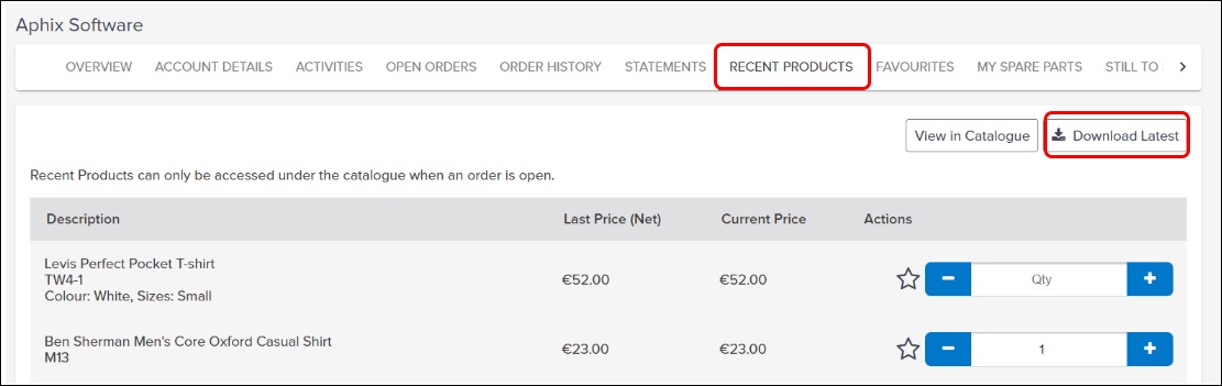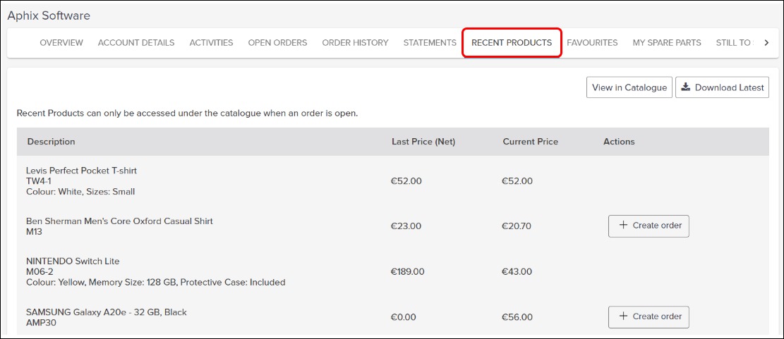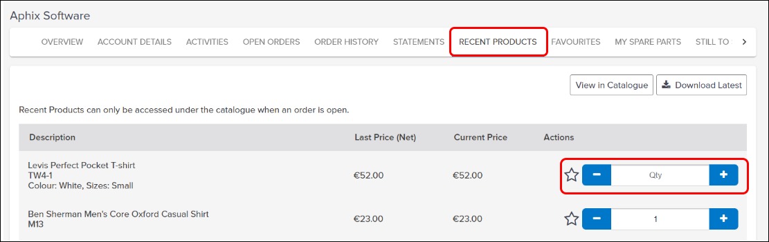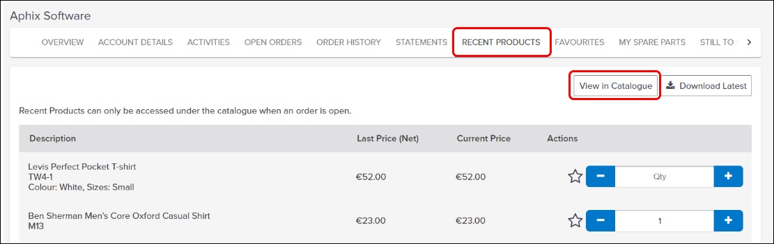 View full product details in product catalogue for recently purchased products